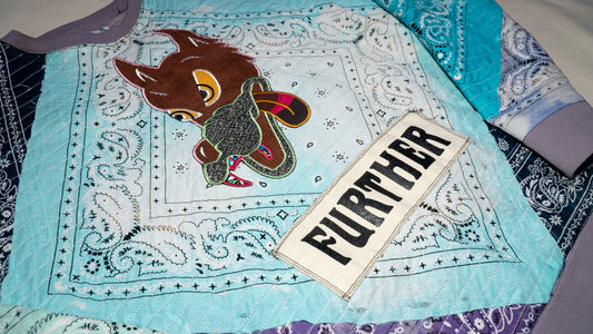 Boro style distressed denim jacket with bandanas