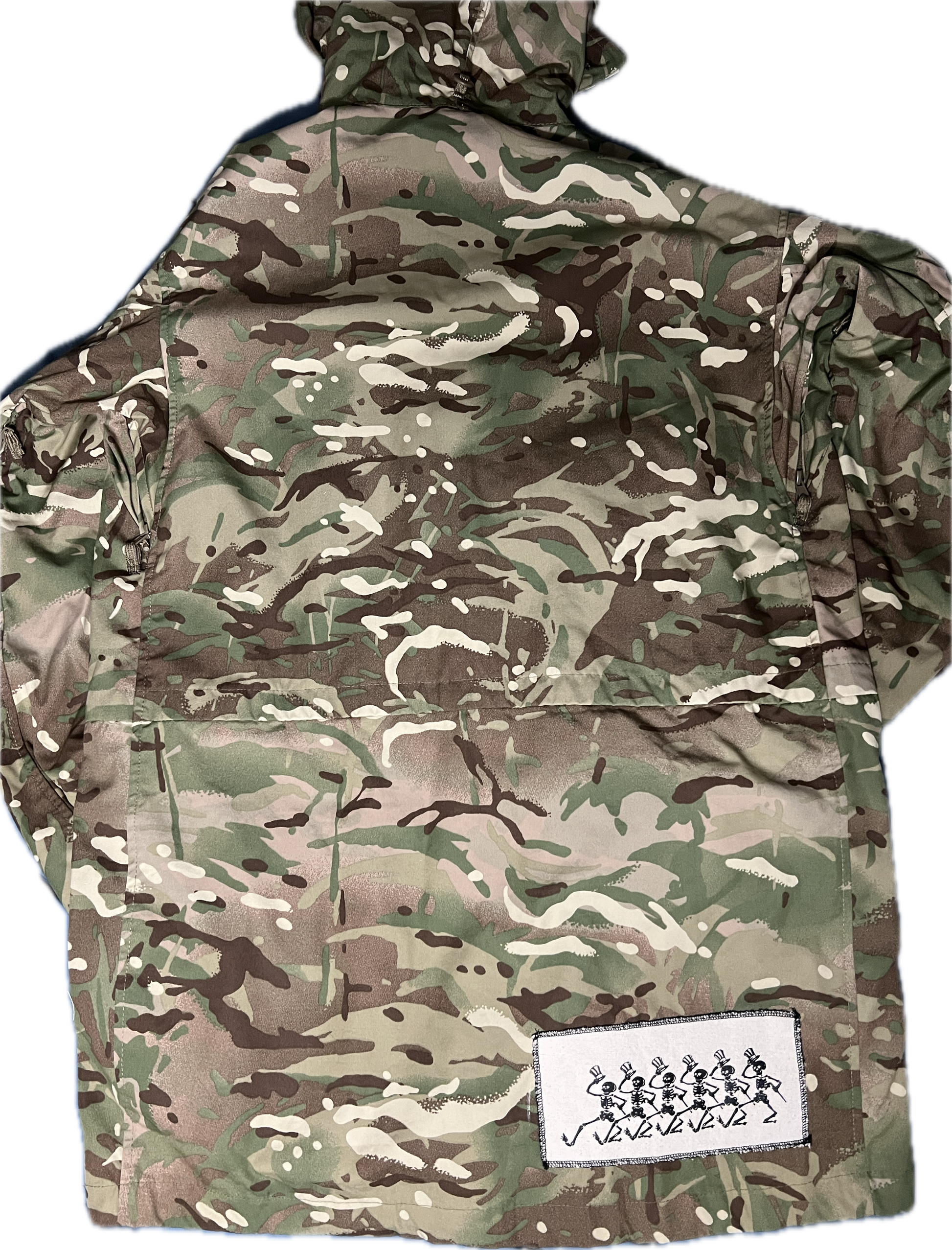 Upcycled Nato-issued camo parka with patches. Size XL. Every piece is one of a kind.